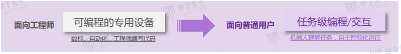 機器人在AI技術的加持下,將從一臺面向工程師的可編程專用設備,升級為普通用戶可用 的、根據任務自主編程運行的智能設備,而這種使用門檻的降低,將是智能產業走向爆發 的臨界點。