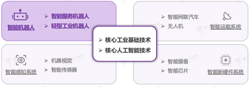 產業鏈上游硬件方面:減速器,伺服電機,控制器, 智能芯片, 傳感器, 末端執行器;軟件方面:交互系統, 控制系統,決策技術,感知系統